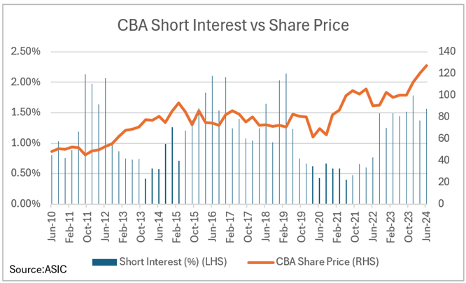 Most of the biggest banks in the world are from the US, with the US banks deriving less than half of their profits from mortgages, with most coming from other arms of the banks. The remainder of the list is made up with from Canada (RBC), India (HDFC) and Australia’s CBA. Interestingly none of the Australian banks are considered by the Financial Stability Board (FSB) to be globally significant banks, despite CBA (market capitalisation A$216 billion) being significantly larger and more profitable than the globally significant Deutsche Bank (market capitalisation A$44 billion). Consequently in July 2024 many investors are calling the Australian banks, especially CBA overvalued and that investors should short sell the major banks.