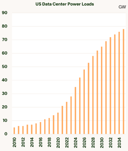 The third key factor is overall strong forecast growth in demand for power. In particular, this reflects surging data centre demand, which is expected to more than double from 2025 to 2030. Meeting such strong demand suggests more capex across the energy mix. Renewable energy is an especially attractive option for meeting some of this demand as it is relatively quick to bring online, while long lead times on new gas make it a less-ready option.