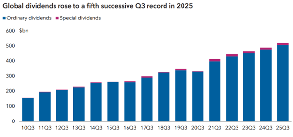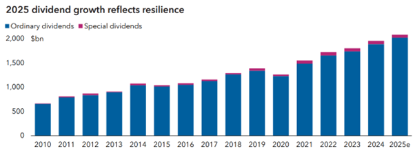 2025 has been characterised by heightened volatility, driven by macroeconomic pressures such as tariffs, a softening labour market, and persistent inflation. Looking into 2026, structural tailwinds for global equities remain robust, despite these near-term challenges. Advances in artificial intelligence continue to attract significant investment, while accelerated innovation in health care and an industrial renaissance have supported corporate earnings growth. While short-term volatility is likely to persist, we believe the long-term outlook for active, research-driven equity investing remains compelling. Moreover, in periods of policy and geopolitical uncertainty, companies with a track record of dividend growth can offer portfolios a measure of stability and resilience when markets become turbulent.