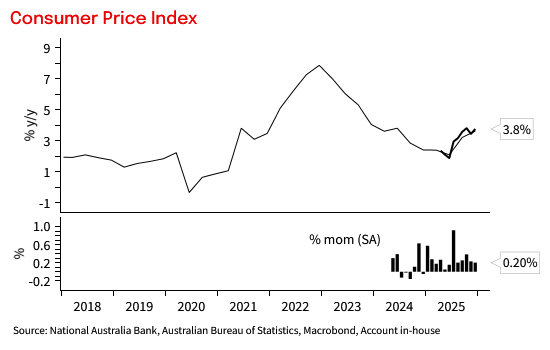CPI was 3.8% yoy in December (NAB 3.7% yoy, Consensus 3.6% yoy), up from 3.4% yoy in November, driven by base effects in domestic travel after a smaller-than-usual December gain in 2024, and by a rebound in car prices after black Friday discounting in November.