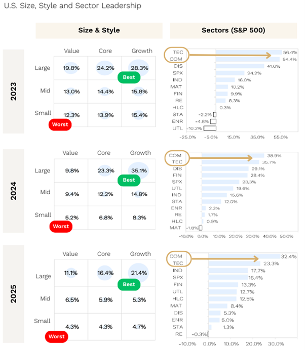 BUT, we do not see 2026 as a “Connect 4” year where the same large-cap growth playbook delivers a fourth consecutive year of outperformance.