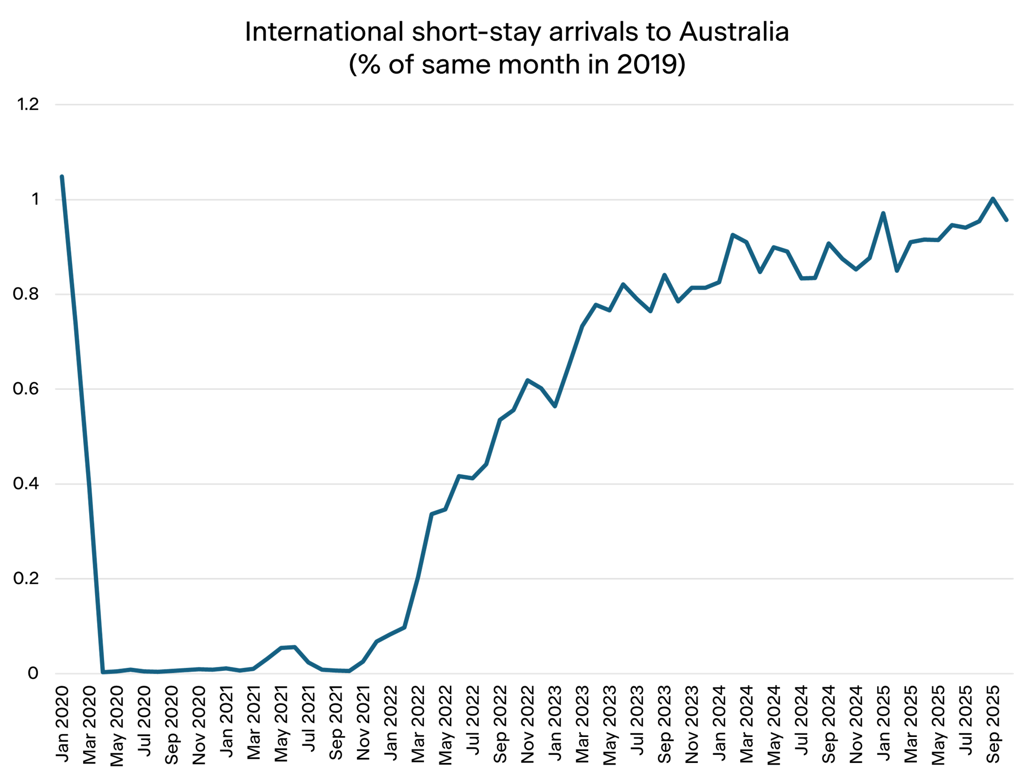 Source: Australian Bureau of Statistics, Overseas Arrivals and Departures, Australia October 2025
