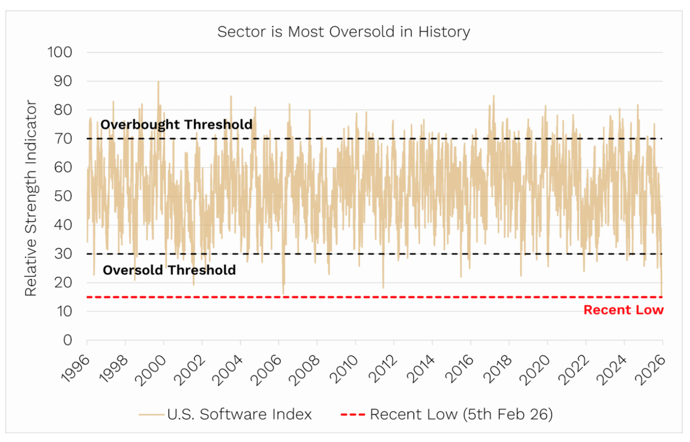 Within the broader AI thematic there has been a growing dispersion between software and semiconductors. This began in mid-2025, but has accelerated in 2026.