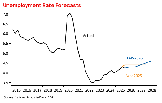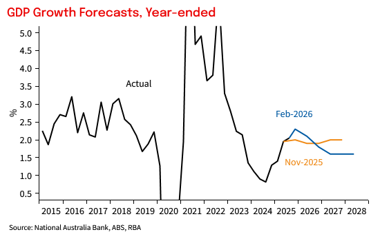 On net, the forecasts now envisage sub-trend growth in 2026/27 and 2027/28, a necessary outcome to get inflation back towards the mid-point of the RBA’s target band by mid-2028. Importantly, risks to the forecasts set in the SoMP appear to be reasonably symmetric, which is a good starting point.