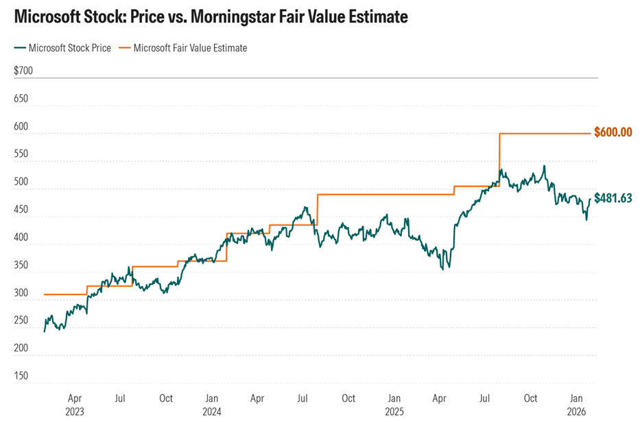 The bottom line: We maintain our fair value estimate for wide-moat Microsoft at $600 per share. We tweaked our model over the medium term, primarily to reflect slightly faster Azure growth and slightly lower margins to account for elevated capex. The stock remains one of our top picks.