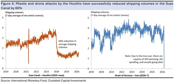 A US-led coalition of warships might change things, but Iran could continue to attack ships, hampering a return to pre-war shipping volumes. In this respect, it is worth noting that the Houthis have successfully reduced shipping volumes through the Suez Canal by about 60% since they first started attacking vessels with drones and missiles in late 2023.