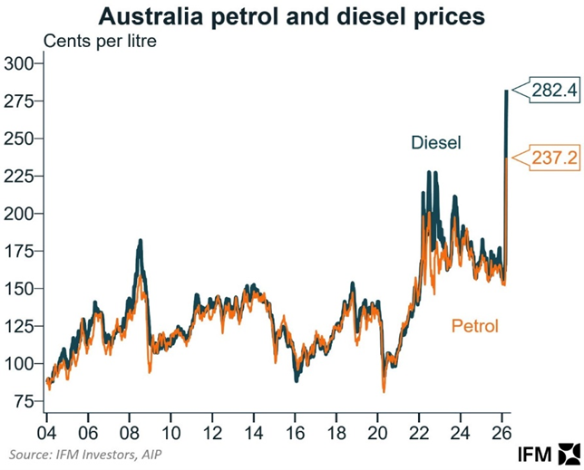Refining margins surged as the Strait closed, reflecting a physical feedstock shortage rather than risk premium. Brent crude surged from $70 per barrel before the conflict to above $100. Singapore complex margins jumped to $30 per barrel, the highest in nearly four years, with jet fuel and diesel cracks leading the rally. Australian retail petrol prices followed within days, reaching record levels as the supply chain disruption worked its way downstream to the pump.