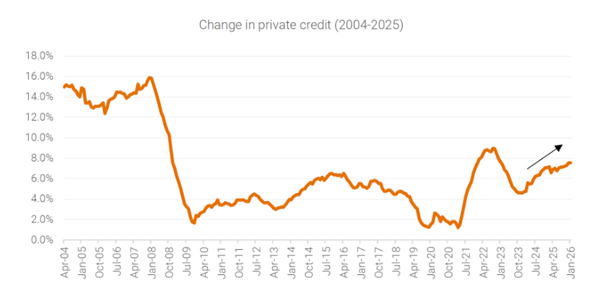 In addition, non-monetary policy changes can also have an impact. For example, recent housing policies have encouraged higher risk tolerance via the federal government’s 5% home loan deposit scheme which came into effect in October 2025. Is it any wonder residential credit growth has since accelerated from 5.7% in July 2025 to 6.7% by January 20265. There can be no better example of Australia’s broken policy framework where the federal government is working to make home ownership easier, while the RBA is working to make it harder.