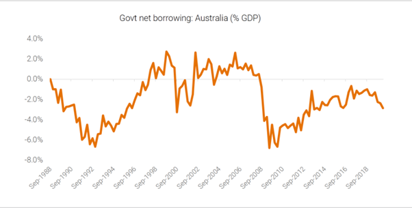 And the relatively high inflation pre-GFC cannot be blamed on government spending. In fact, the opposite was true. Australia ran persistent surpluses in the early 2000’s compared to persistent deficits post GFC.
