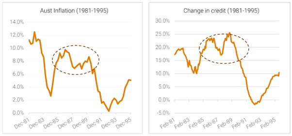Worryingly for the RBA, the current environment of rising inflation, rising interest rates and accelerating credit growth has historically ended in a meaningful economic correction; the same conditions that were prevalent in Japan (1989), Australia (1990), and the US (2008) all ended in vicious recessions.